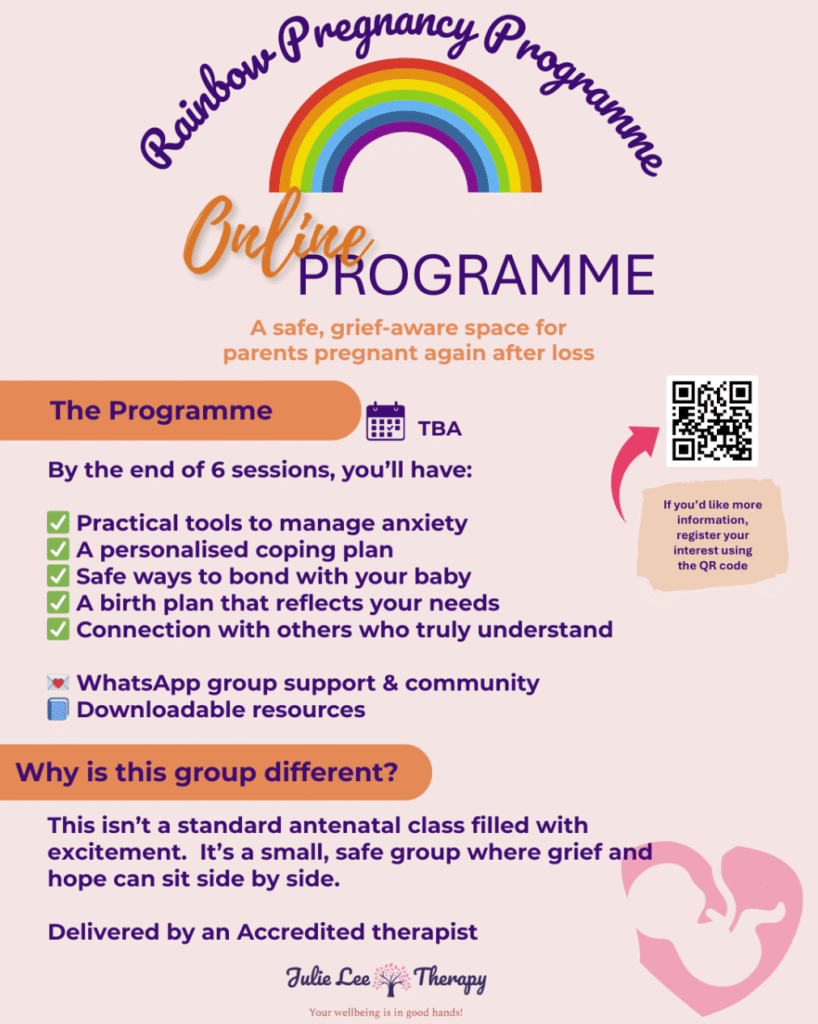 Losing a baby is devastating, whether through miscarriage, termination, stillbirth, or loss in the NICU. Every form of baby loss is profound, and you don’t have to face it alone. Grieving the loss of both your baby and the future you had envisioned is an incredibly personal journey. This grief is often intertwined with trauma, and you may find yourself reliving the loss, even years later. It can feel isolating when others expect you to have moved on. You’re seeking peace, to honour your bond with your baby, and to find a way forward. While there are no quick fixes for grief, working with a specialist counsellor can help you process your loss and begin to heal. Check out the group programmes for more information on my Rainbow Pregnancy Programme.